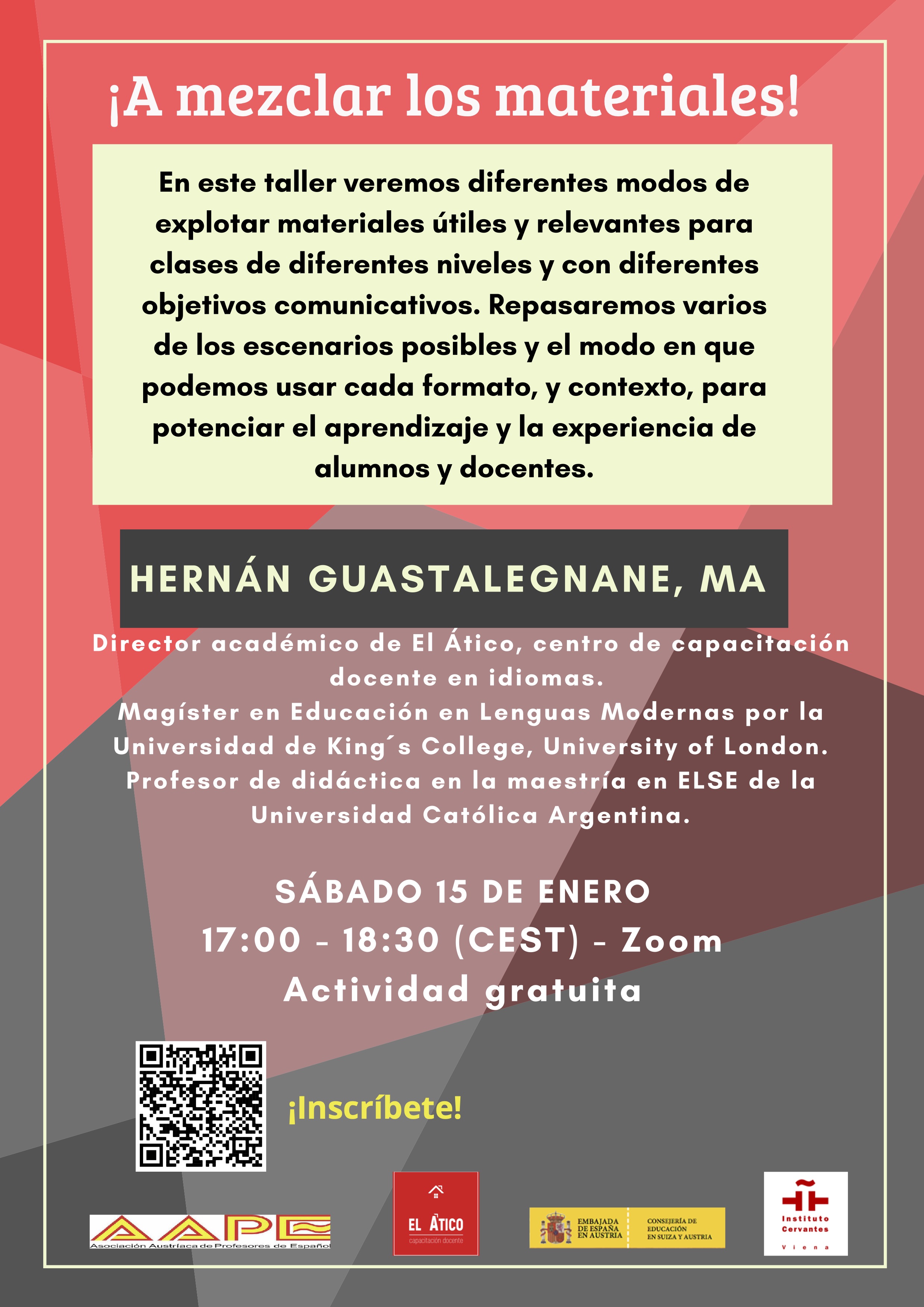 Esta actividad está organizada en colaboración con la Editorial Edelsa / Anaya ELE, el Instituto de Románicas de la Universidad de Viena, la Asesoría Técnica de Educación de la Embajada Española y el Instituto Cervantes de Viena.